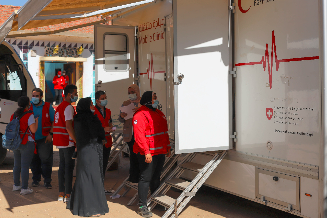 في السياق نفسه، صرح الدكتور رامي الناظر، المدير التنفيذي للهلال الأحمر المصري بأنه مع الساعات الأولي لتداعيات الأمطار بمحافظة أسوان تواجدت الفرق الميدانية من فرع الهلال الأحمر بأسوان لتقديم خدمات الإسعافات الأولية وإخلاء المصابين، بالإضافة إلى تقييم سريع للأضرار والاحتياجات، حيث تم إمداد قري المحافظة المتضررة من خلال الفرق المركزية ولوازم الإغاثة من بطاطين ومستلزمات معيشية وأدوات نظافة وتعقيم.