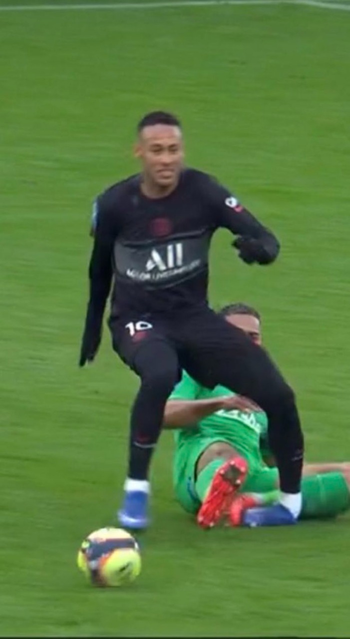 وسقط نيمار على أرض الملعب في الدقيقة 83 بعد تدخل عنيف من لاعب سانت إيتيان على قدمه اليسرى، ليغادر الملعب بعدها مباشرة.