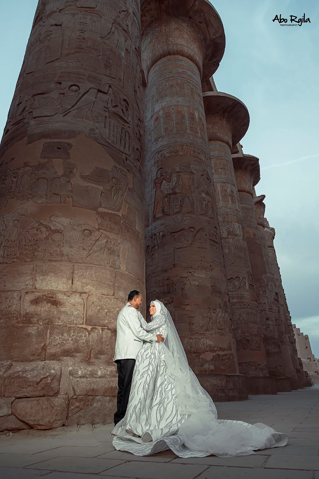 وواصل أبو رجيلة: اقترحتُ على العروسين أكثر من مكان للتصوير، إلا أنهما أعجبا بشدة بالتصوير في طريق الكباش، بالتزامن مع إطلاق حفل الافتتاح الضخم.