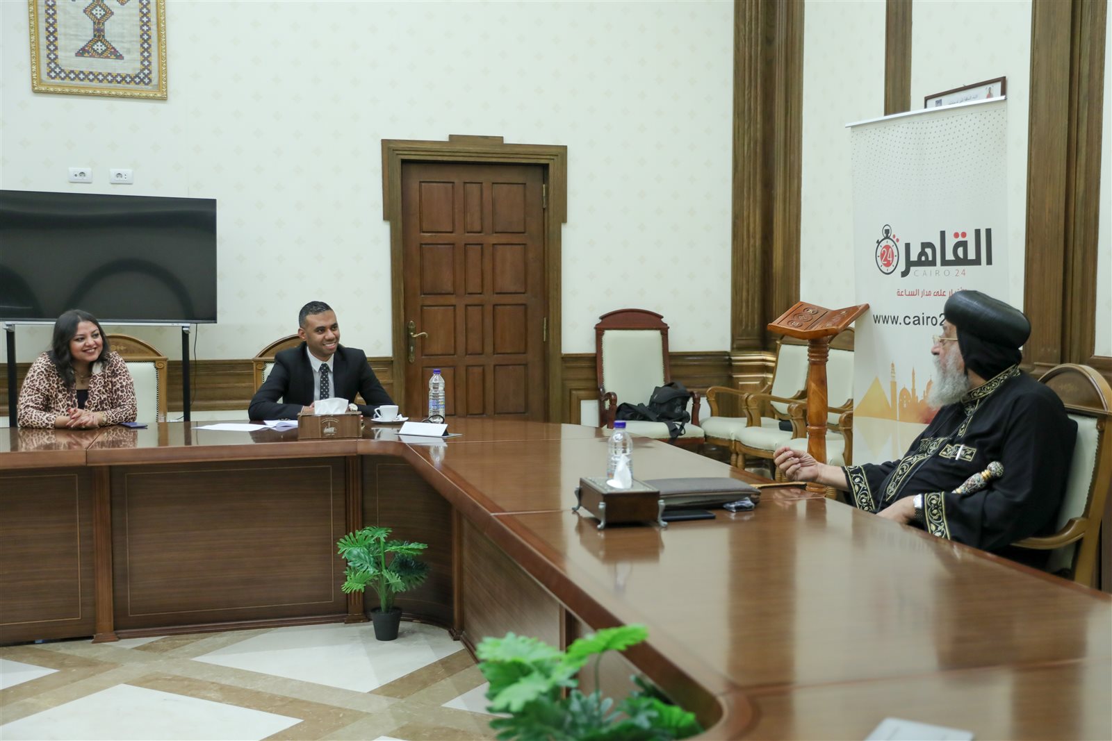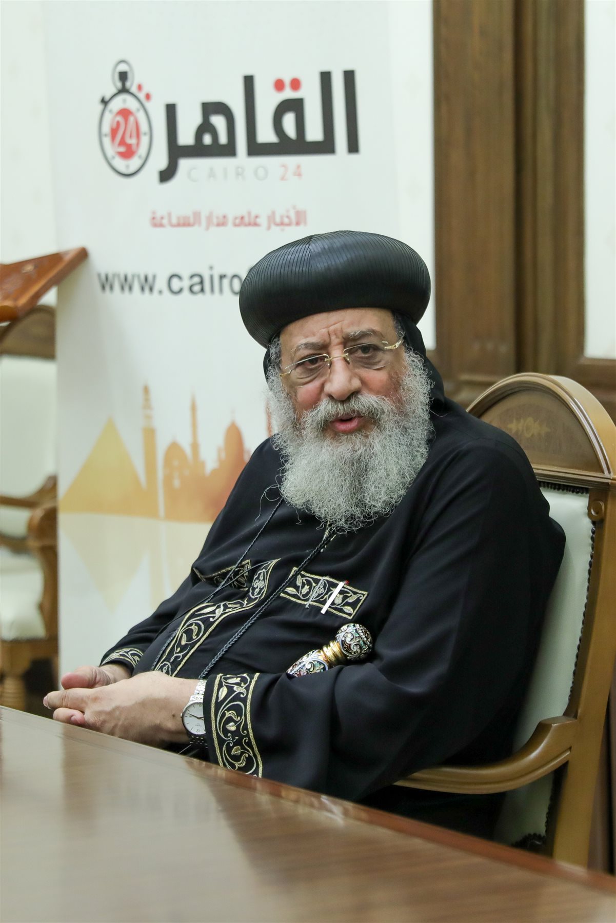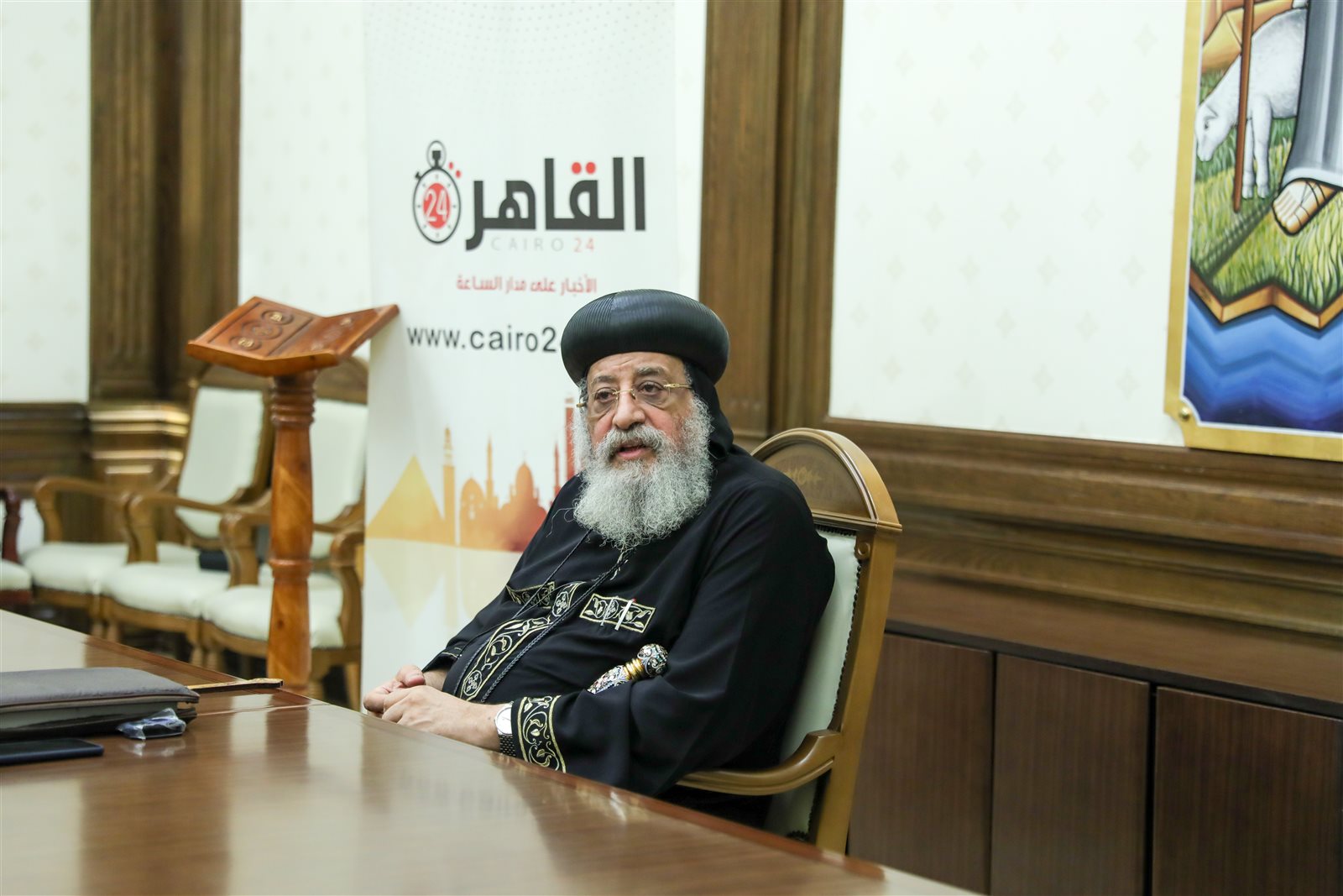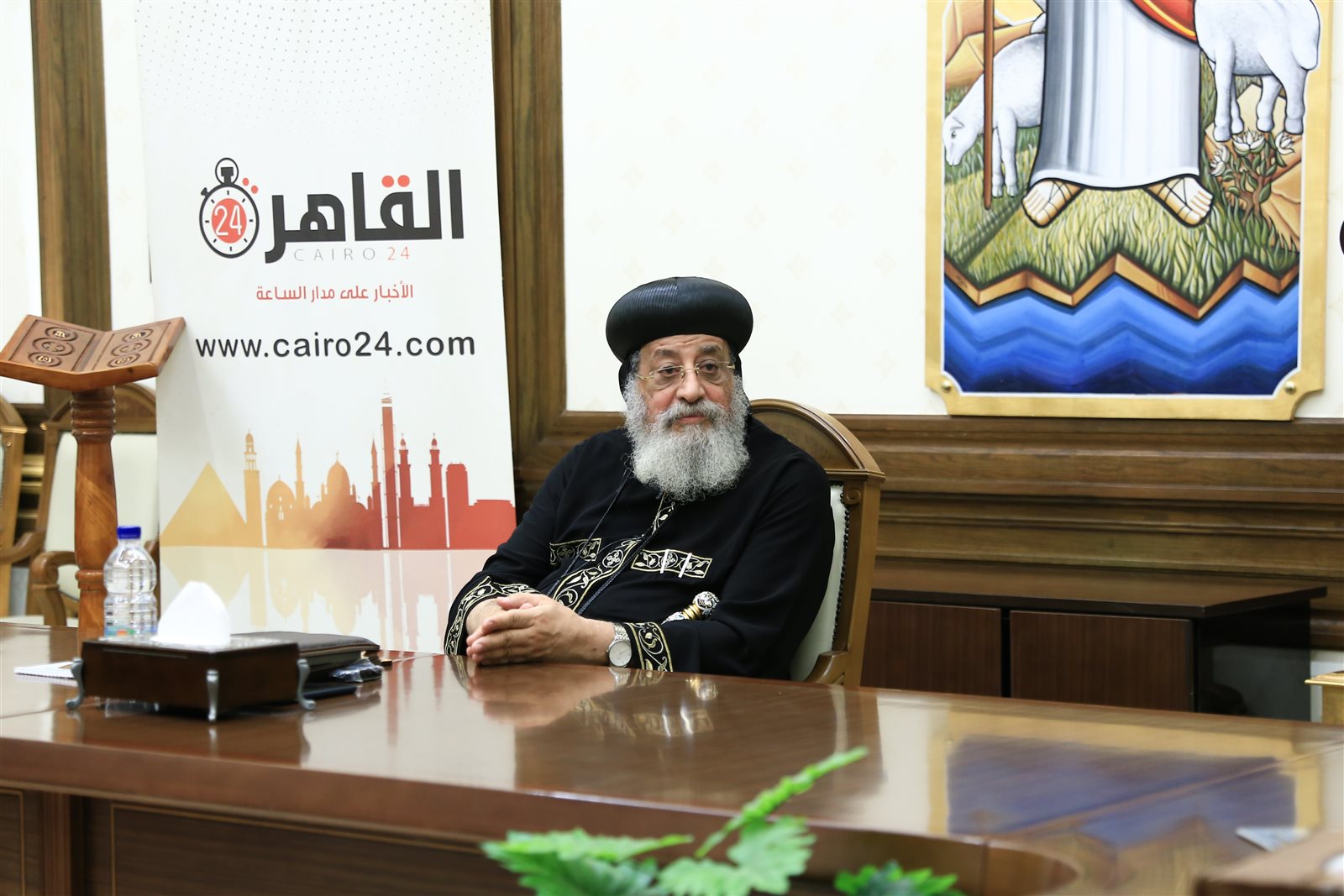 كان في مخيلتنا قبل الذهاب للقاء قداسة البابا وإجراء حوار صحفي معه لـ القاهرة 24 أن نسأل وهو يُجيب. فما أن تطأ قدماك الكاتدرائية العريقة لمحاورة البابا إلا وتزدحم في رأسك عشرات الأسئلة التي تحتاج إلى إجابات، ورغبة صحفية مُلحة لكشف الكثير من الأسرار والكواليس في العديد من المواقف والأحداث، ولكن تلك المرة كانت مختلفة تمامًا.
