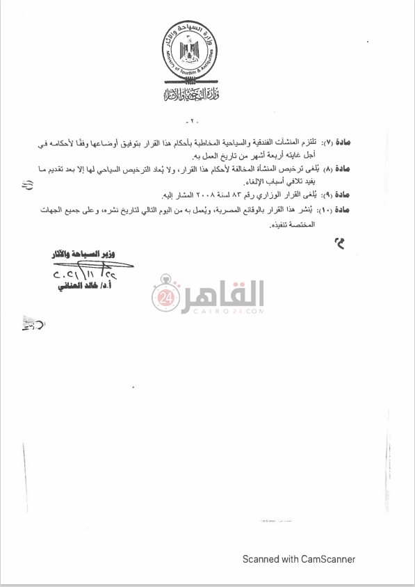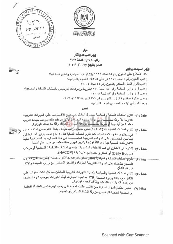 وحصل القاهرة 24 على نسخة من القرار الوزاري رقم 290 الصادر لتنفيذ المشروع القومي لتدريب جميع العاملين بالمنشآت السياحية.