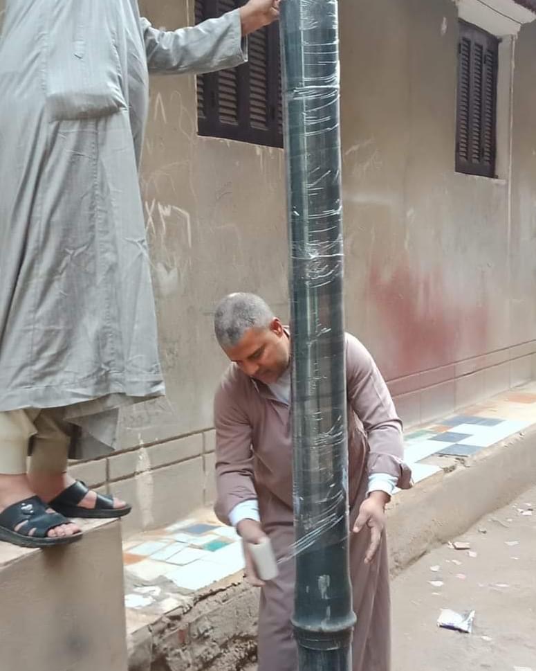 مبادرة لتغطية أعمد الإنارة بإحدى قري الدقهلية استعدادًا لموسم الشتاء.. والأهالي: بنحافظ علي أرواح أولادنا