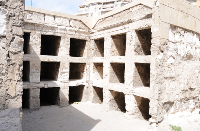 وكان البعض من تلك الحجرات تضم توابيت ضخمة على شكل أسرّة تسمى كليني وهي كلمة يونانية تعنى سرير، ولكن أغلب الدفنات كانت تتضمن "لوكولي" وهي عبارة عن فجوات مستطيلة منحوتة في الجدران. وكانت أغلب الدفنات تتضمن تلك الكوة التي تحتوي على جرار تضم رفات الموتى بعد حرقها وهي العادة التي جاءت إلى مصر من اليونان.