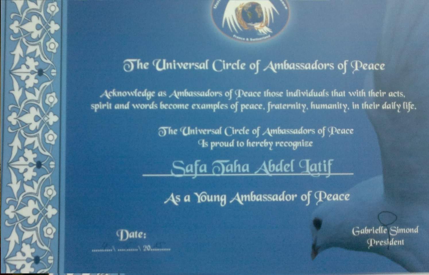 وتابعت: أنا سفيرة للسلام العالمي، في دوائر السلام العالمية كسويسرا وفرنسا، وهي مجموعة من الشباب والأطفال المؤثرين في مصر، موضحة: لما عرفوا مواهبي، قرروا اني استحق اللقب، وكنت سفيرة سلام في حظر كورونا، كان كل واحد بيعبر فينا عن السلام بموهبته الخاصة.