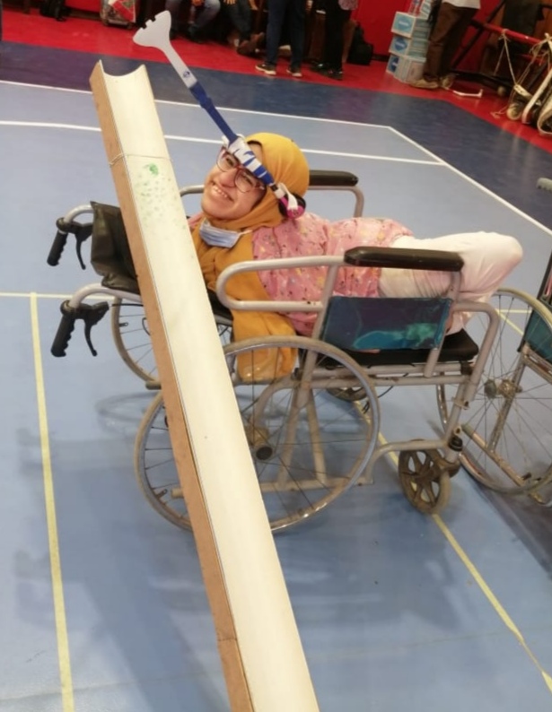 وأكدت ممارستها رياضة البودجا، وهي رياضة لذوي الاحتياجات الخاصة، كما أنها تلعب برأسها، لعدم قدرتها على اللعب بقدميها أو يديها، مشددة: حصلتُ على ميدالية برونزية و2 فضية.