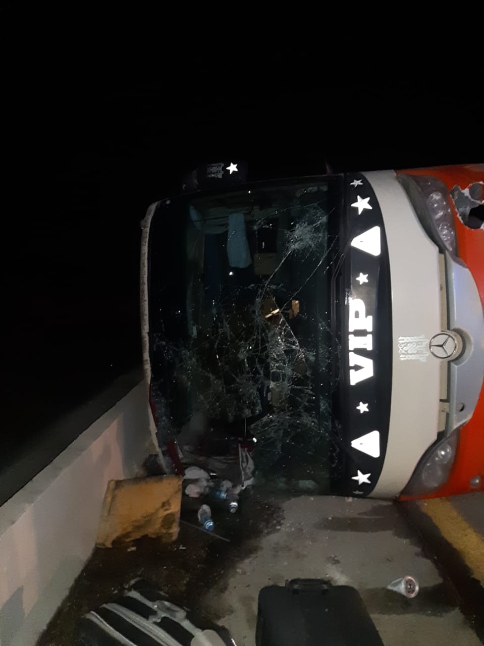 وتلقت الأجهزة الأمنية في محافظة المنيا، إخطارا من غرفة عمليات النجدة، بانقلاب أتوبيس على الطريق الصحراوي الشرقي، شمال وصلة طريق الشيخ فضل بمركز بني مزار شمال المحافظة.