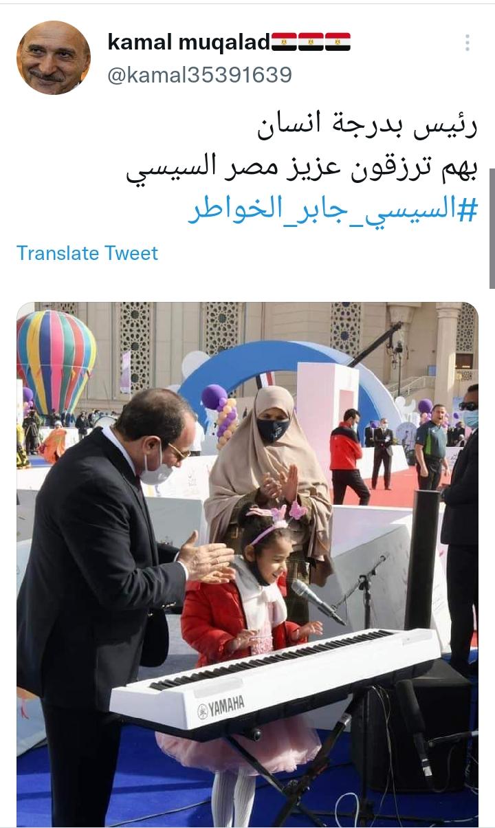 فتاة أخرى كتبت: ربنا يبارك فيك يا ريس أخدت دعوات من كل أهالى ذوى الهمم الطيبين، وقال أخرى: رئيس بدرجة إنسان، بهم ترزقون عزيز مصر السيسي، بينما نشر عبدالرحيم صورة للرئيس مع الأطفال وعلق عليها: تصرف تلقائي من أب حنون تجاه ابنته، اللهم أُجبر بخاطر الرئيس السيسى كما جَبر بخاطر المستضعفين منا.