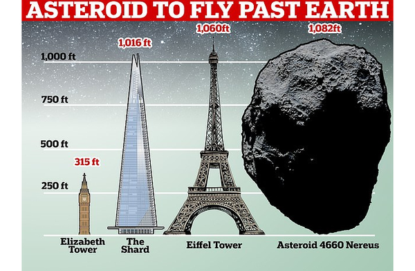 أضاف رئيس قسم الفلك، سيمر بالقرب من الأرض يوم السبت 11 ديسمبر 2021. سيحدث أقرب اقتراب في الساعة 13:51 بالتوقيت العالمي ولن يضرب الأرض.
