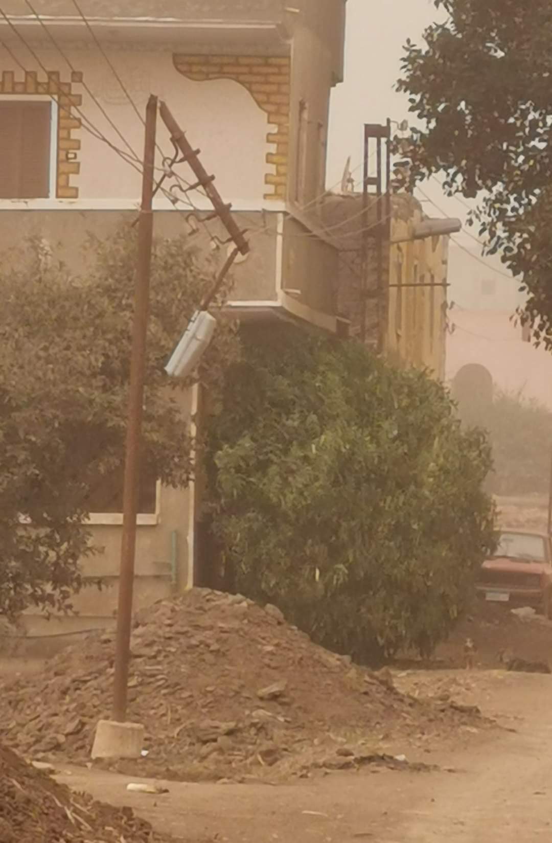 وقوع عامود إنارة في قويسنا نتيجة الطقس السيئ بالمنوفية