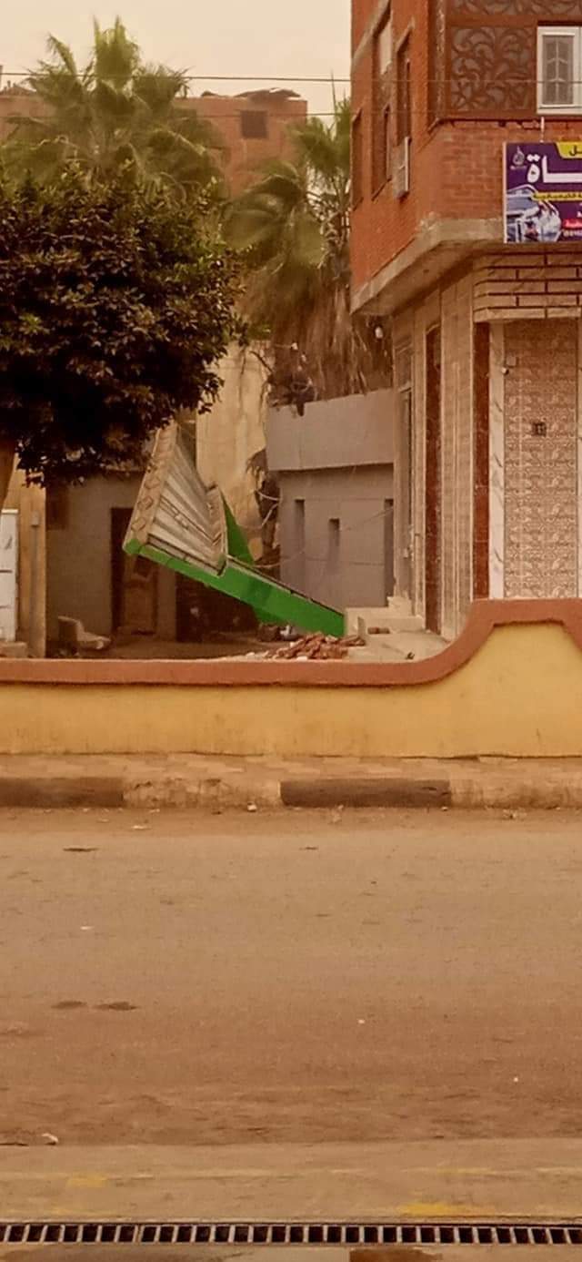 وقوع واجهة مكتب بريد في تلا نتيجة الطقس السيء بالمنوفية