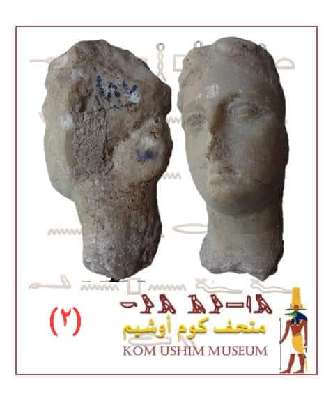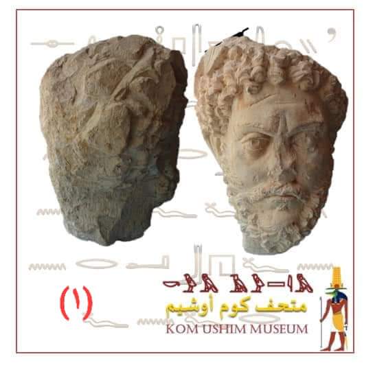 - رأس تمثال لشاعر روماني من منطقة الفيوم يظهر عليه تصفيف الشعر واللحية وكذلك الشارب والجزء الأيسر مفقود وكذلك جزء من اللحية؛ مصنوع من الحجر الجيري ويرجع للعصر اليوناني الروماني.
