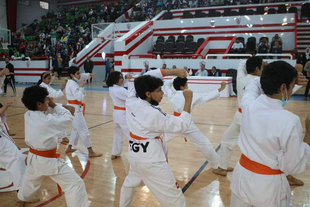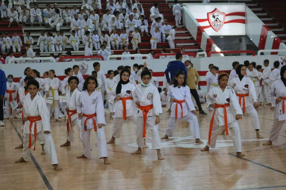 نائب رئيس الزمالك يشهد اختبارات أحزمة الكاراتيه في النادي | صور