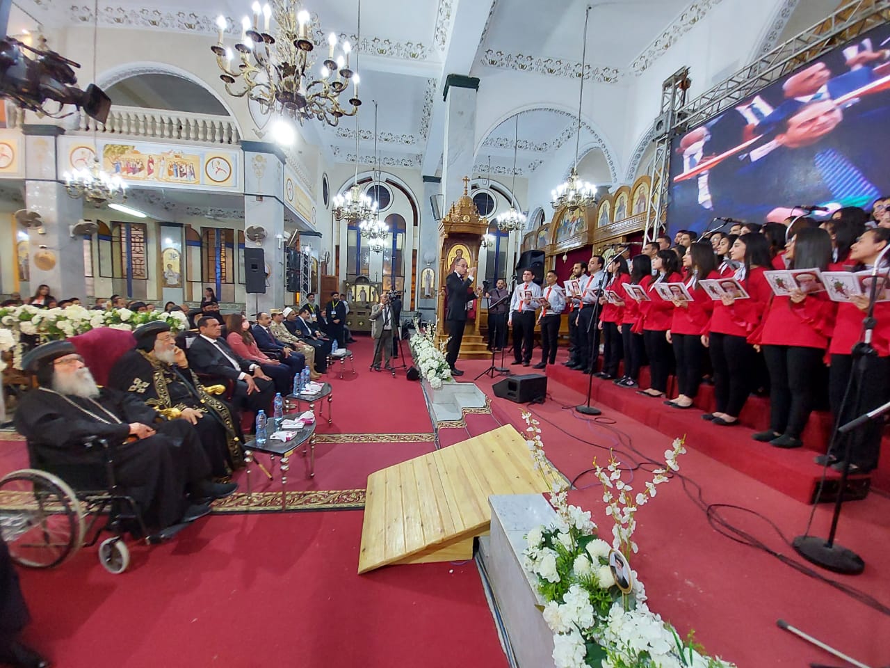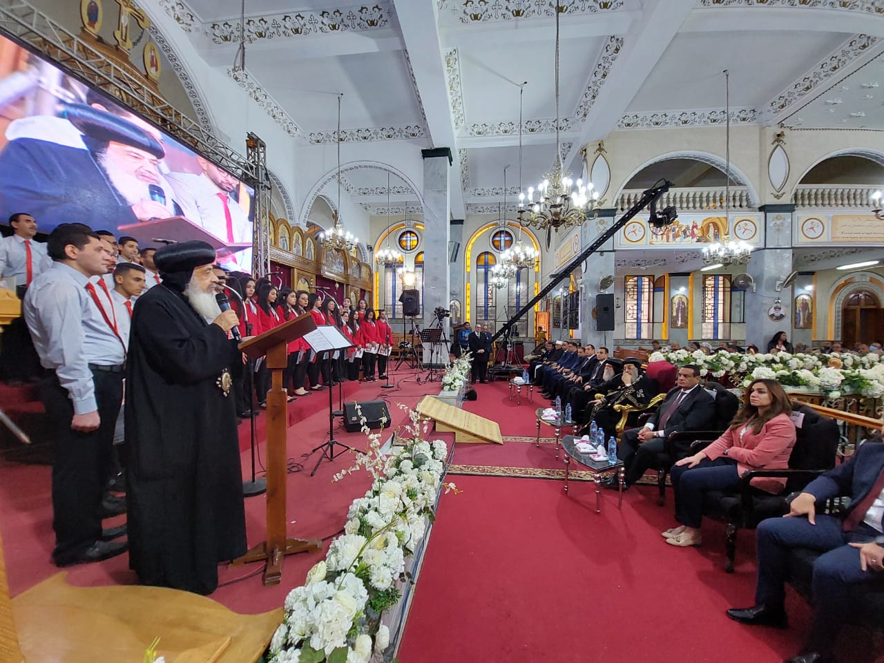 ورحب قداسة البابا تواضروس الثاني بمحافظ البحيرة وجميع الحضور، مشيدًا بجهود ودور الرئيس عبد الفتاح السيسي رئيس الجمهورية، بالسماح والتوسع في بناء دور العبادة وأعمال التطوير والتنمية التي تتم بكل ربوع مصر ومنها جهود التنمية التي تشهدها محافظة البحيرة.