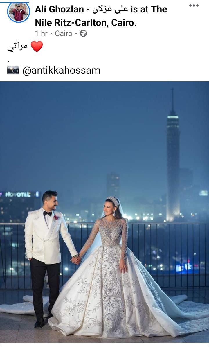 يحتفل اليوتيوبر علي غزلان، بزفافه على فرح شعبان، ملكة جمال مصر عام 2017، في إحدى الفنادق الفخمة بالقاهرة.