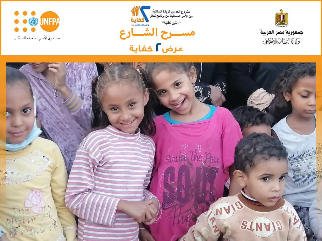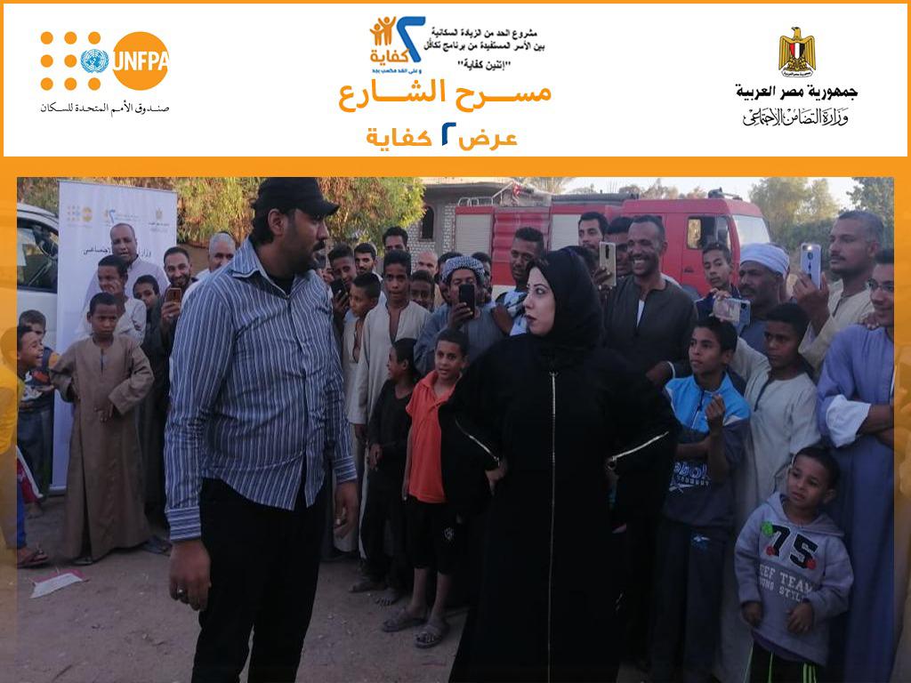قالت وزارة التضامن الاجتماعي، إن مشروع 2 كفاية، الذي قامت الوزارة بتنفيذه في قرى المبادرة الرئاسية لتطوير قرى الريف المصري حياة كريمة، نفذ عروضه المسرحية في 20 قرية من القرى المستهدفة بالمحافظات العشر المستهدفة في المرحلة الأولى، حيث المحافظات الأكثر فقرًا والأعلي في معدلات الخصوبة والتي تضم محافظات البحيرة، الجيزة، الفيوم، بنى سويف، المنيا، قنا، سوهاج، أسيوط، الأقصر وأسوان، وذلك بواقع عمل عرضين مسرحيين بكل محافظة.