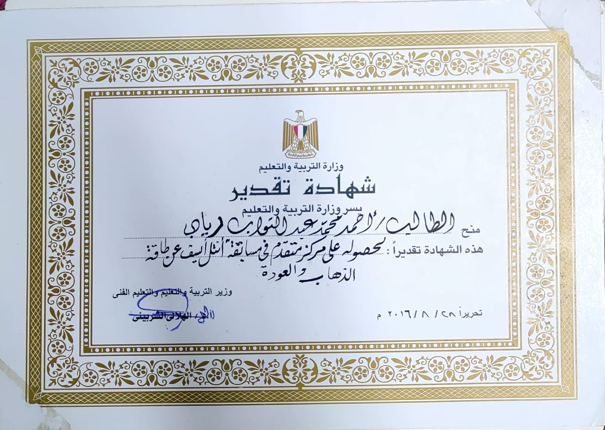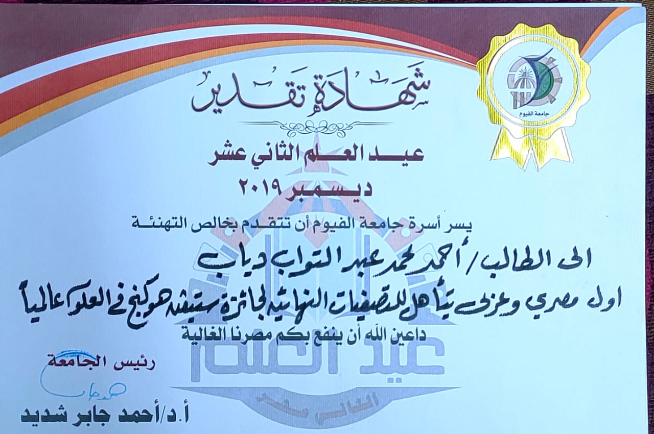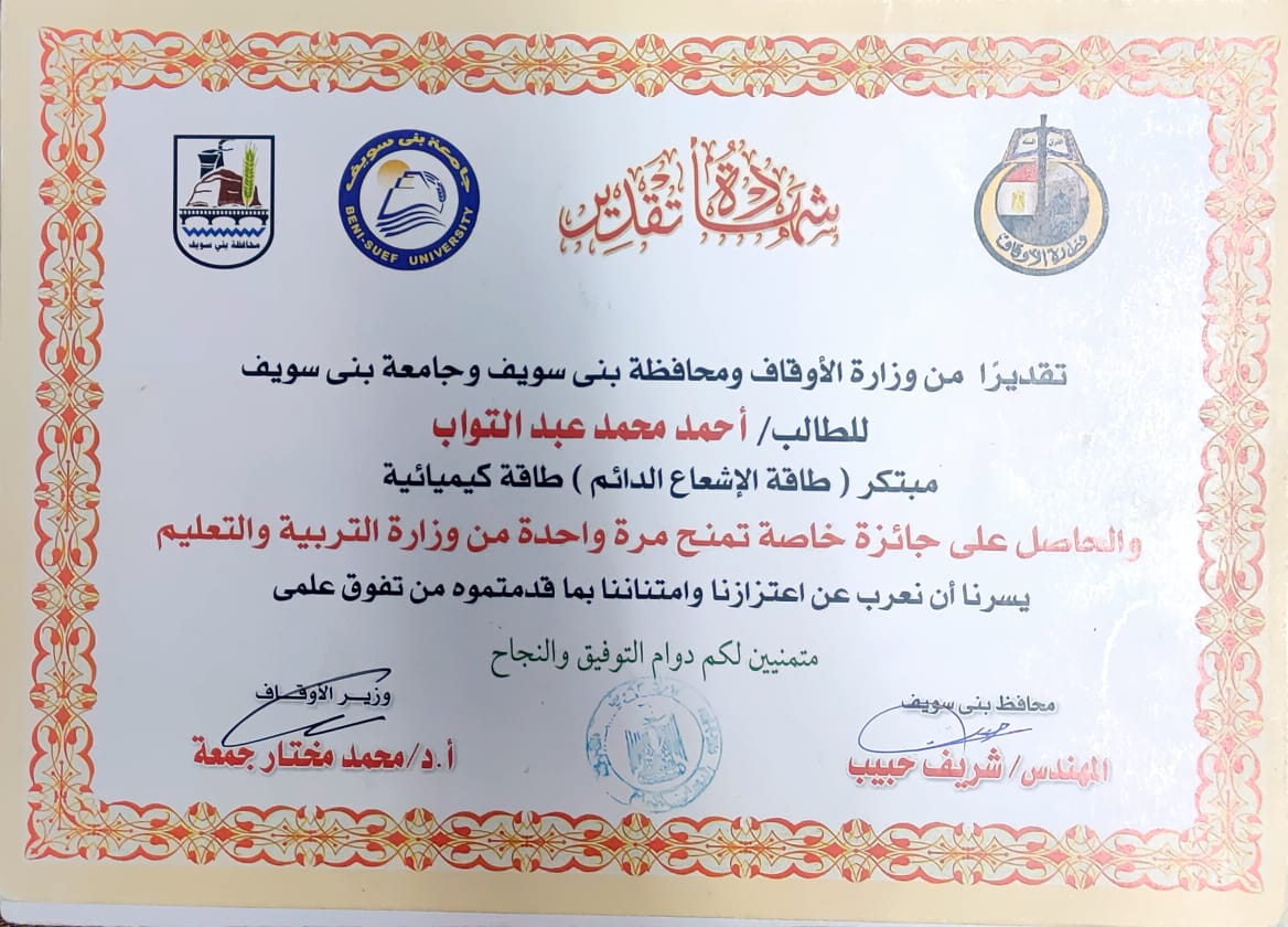 تأهل المهندس أحمد محمد دياب، أحد أبناء محافظة بني سويف، للتصفيات النهائية لجائزة ستيفن هوكينج العالمية في العلوم، كأول عربي وإفريقي يتأهل للتصفيات النهائية.
