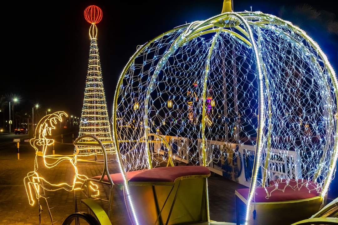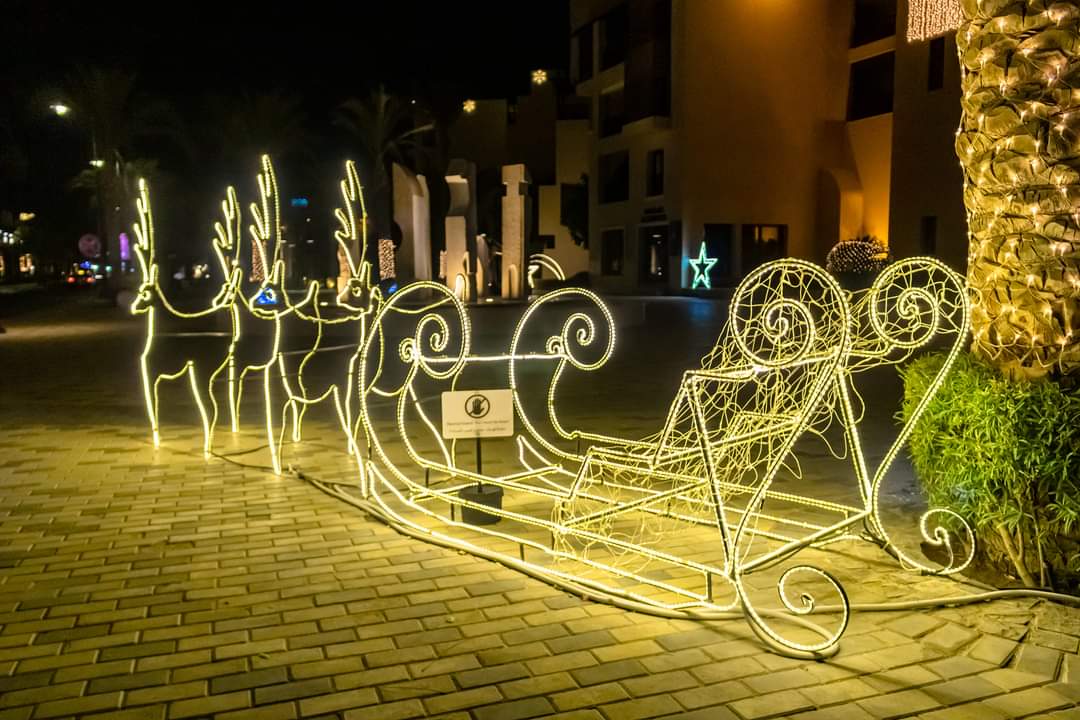 وتزينت الشوارع خاصة منطقة الممشى السياحى والقرى جنوب المدينة والقرى والمنتجعات السياحية، بأشجار أعياد الميلاد وسط أضواء مبهجة، والمجسمات المضيئة لبعض الحيوانات والأشجار وبابا نويل، وجرى نشر الزينة المضيئة.