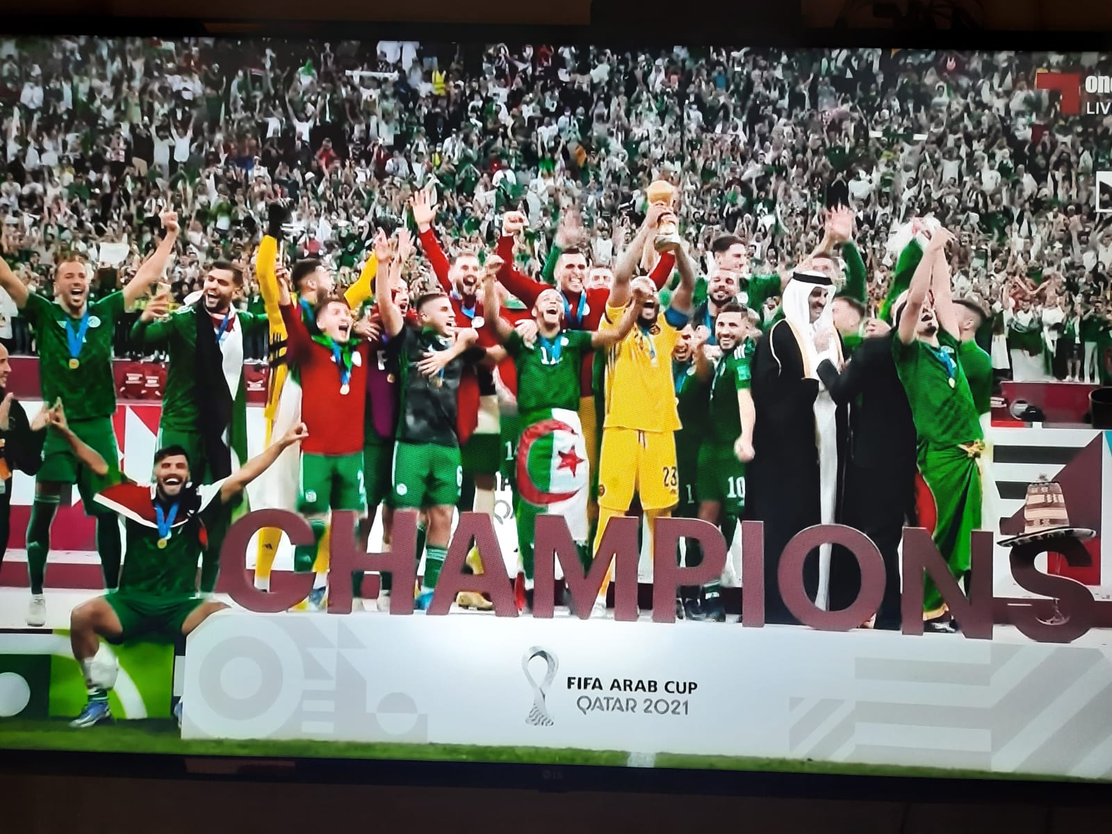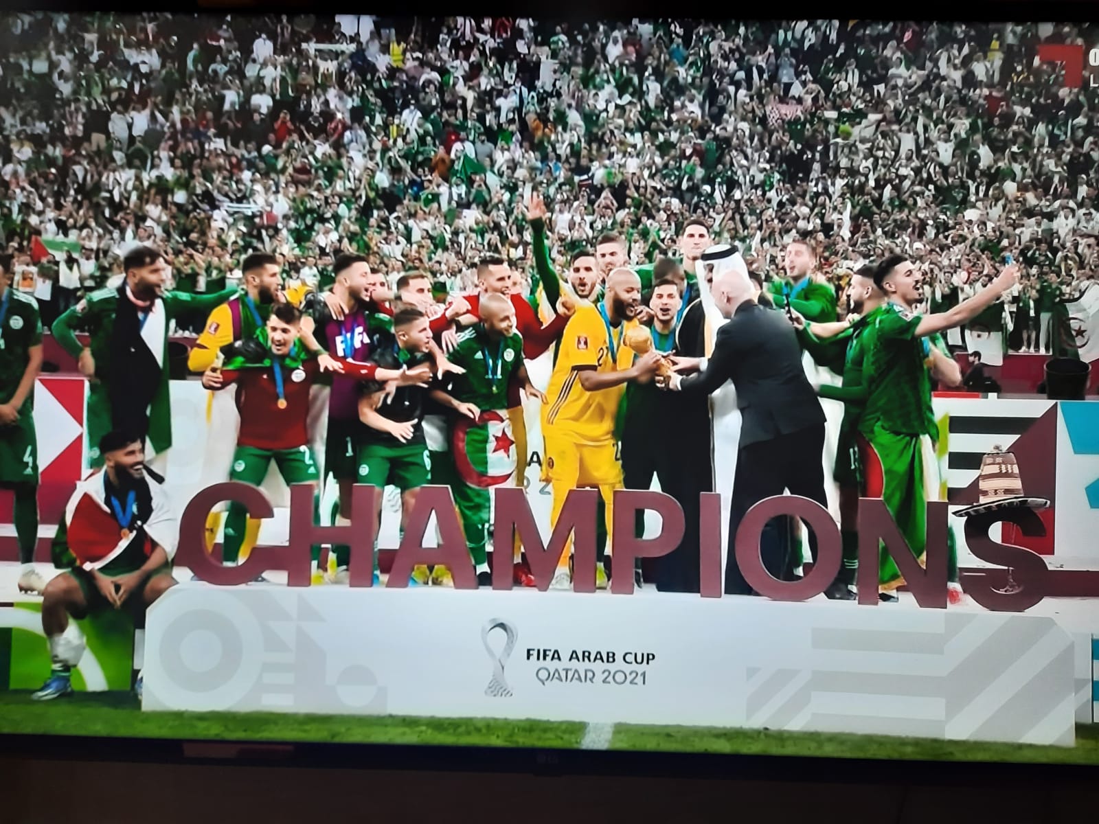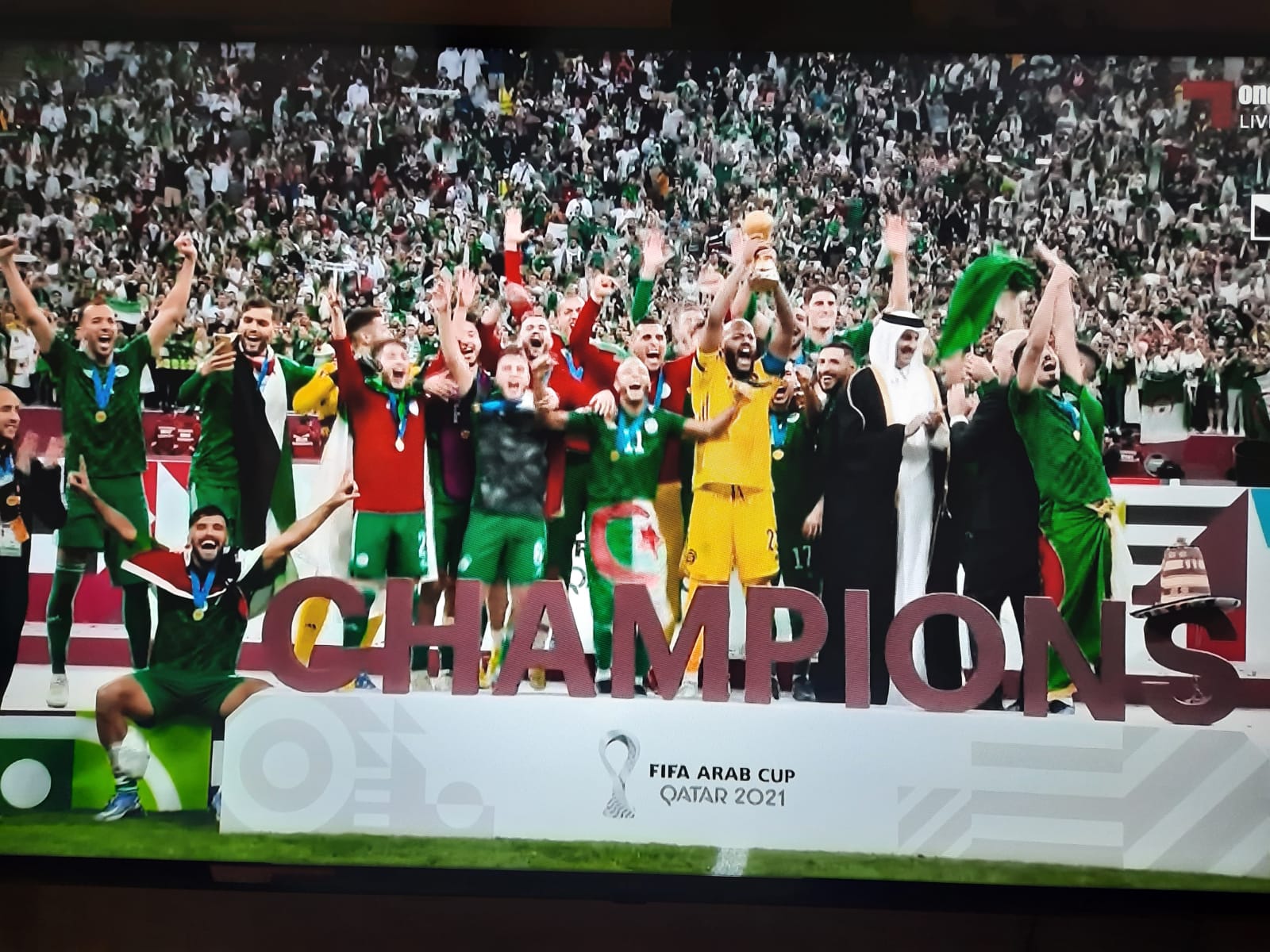 انتهت مراسم تتويج منتخب الجزائر، بلقب بطولة كأس العرب 2021، والتي حصدها للمرة الأولى في تاريخه، عقب الفوز على نظيره التونسي.