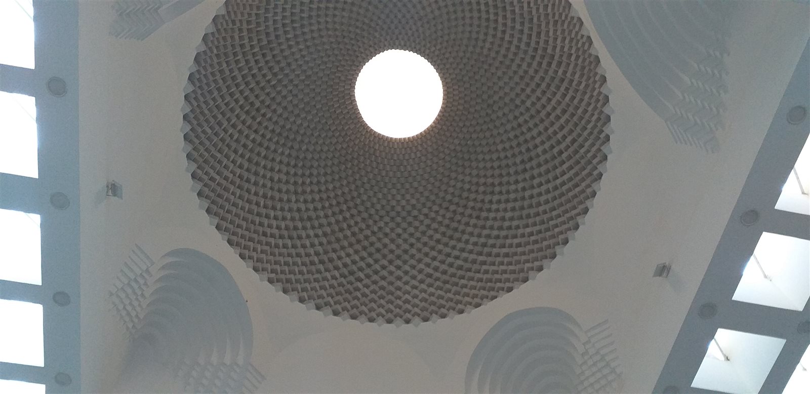ويُعد المسجد بطرازه المعماري الحديث، تجربة فريدة في الإبداع المصري في التصميم الذي كان يُمثل سقف مثلث كروي يستقبل الهواء النقي والضوء من أعلى، من خلال 108 فتحة من الفتحات، فيما لا يوجد داخل المسجد أية نوافذ ما عدا نافذة واحدة بجوار القبلة.
