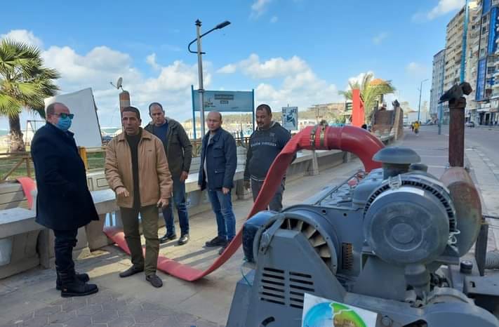 تفقد اللواء مهندس محمود نافع رئيس شركة الصرف الصحي بمحافظة الإسكندرية، تمركزات سيارات ومعدات الشركة على طريق الكورنيش بعد ارتفاع موج البحر، وبالتزامن مع هطول الأمطار الغزيرة وذلك طبقًا لتوقعات هيئة الأرصاد.