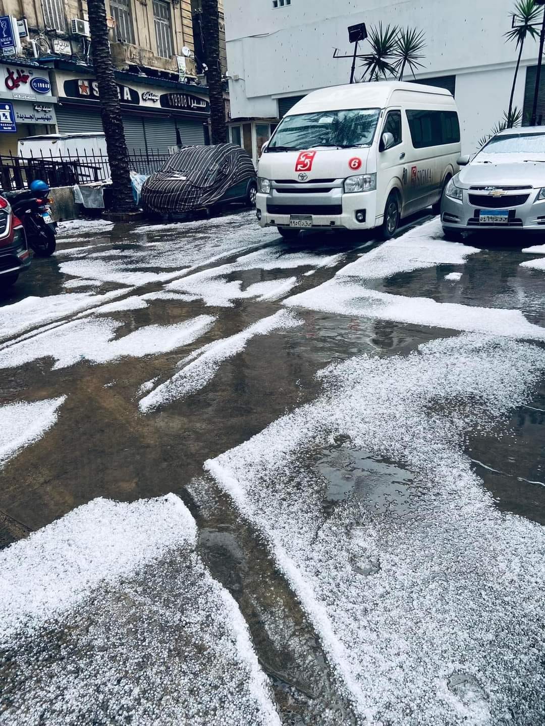 أوروبا مصر.. الثلوج تكسو شوارع الإسكندرية في مشهد نادر
