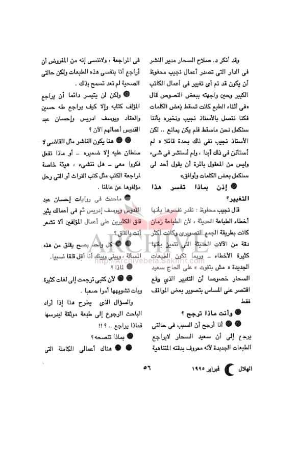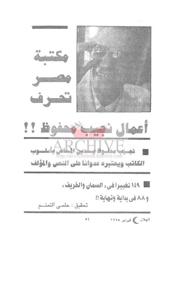 السؤال الذي يطرح نفسه هنا هل تعرضت أعمال نجيب محفوظ للتعديل من قبل؟ والإجابة نجدها في تحقيق أجراه الباحث حلمي النمنم، حول هذا الأمر في عدد شهر فبراير لمجلة الهلال عام 1995 تحت عنوان مكتبة مصر تحرف أعمال نجيب محفوظ.