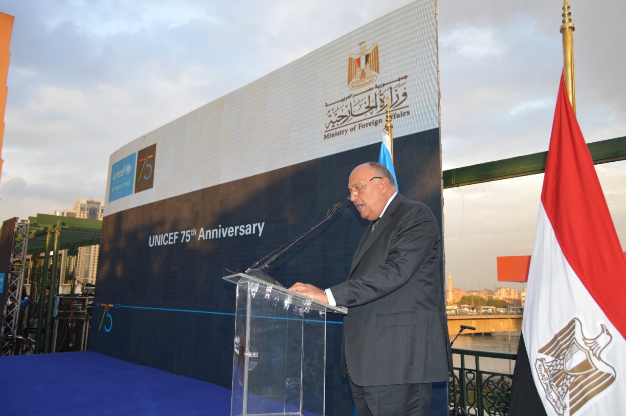 افتتح سامح شكري وزير الخارجية، احتفالية مرور 75 عامًا على تأسيس صندوق الأمم المتحدة للطفولة UNICEF.