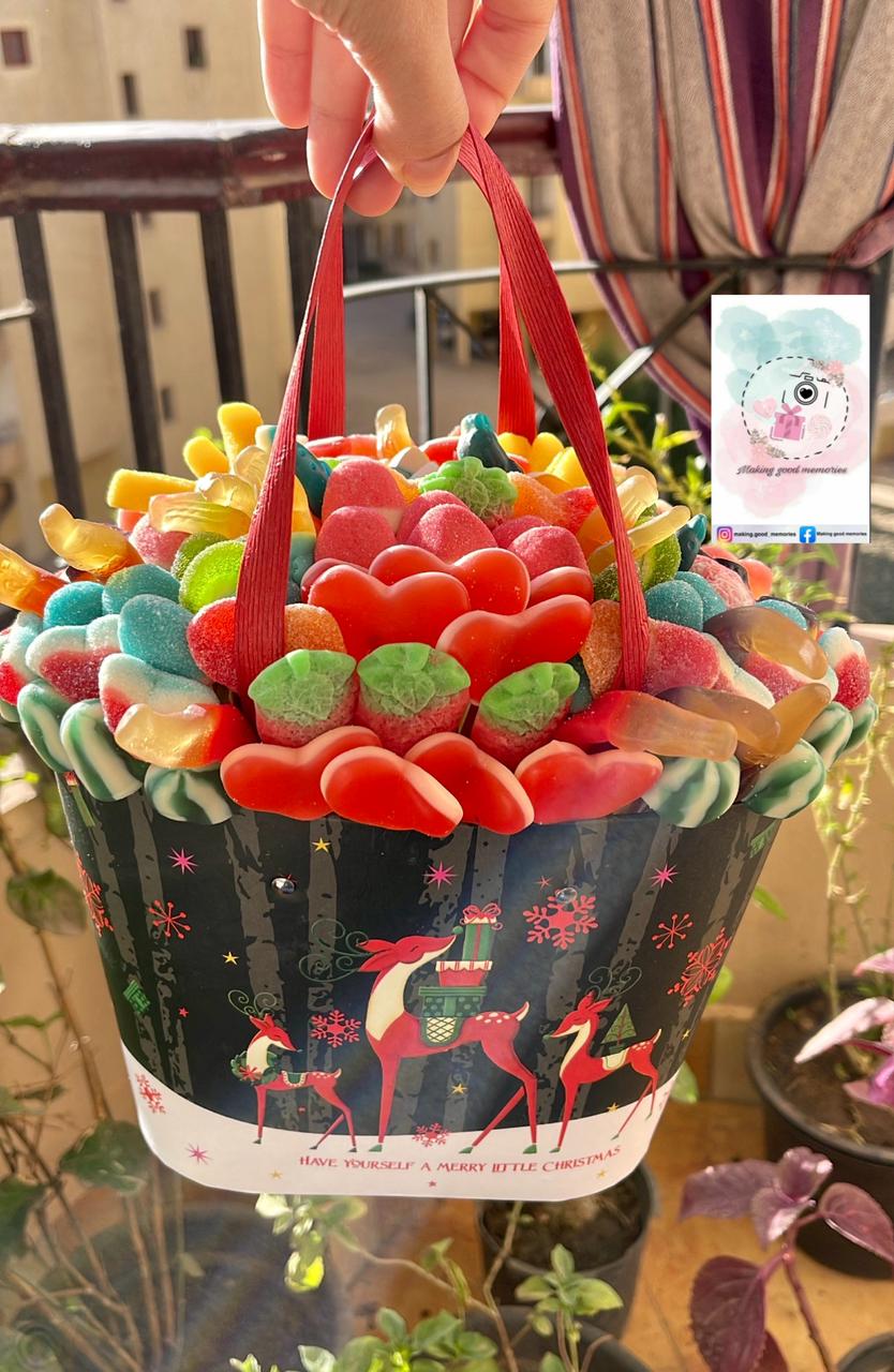حلقت اسراء عادل خارج الإطار، لتنفرد بمشروعها بعيدًا،عن المشروعات الأخرى، ولتقدم في احتفالات الكريسماس، شكلا مختلفا لكاندي من خلال بوكس وبوكيهات مميزة في الشكل والخامة.