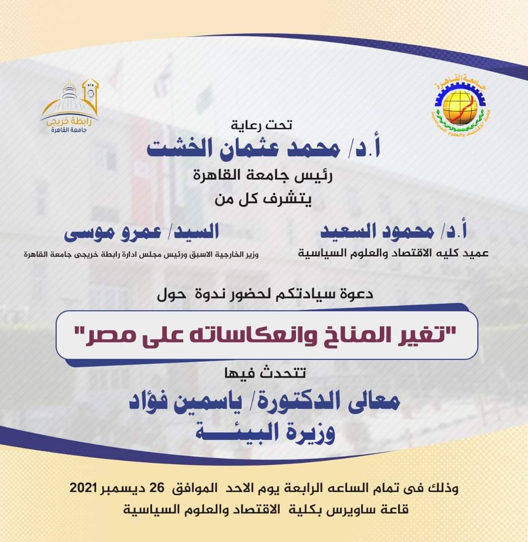 وزيرة البيئة تتحدث عن تغير المناخ وانعكاسه على مصر بكلية الاقتصاد والعلوم السياسية