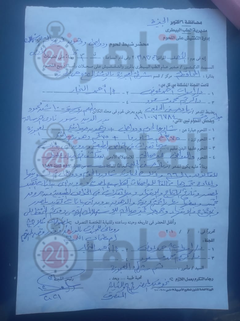 ننشر محضر ضبط 450 كيلو لحوم فاسدة بـ مطعم روستو