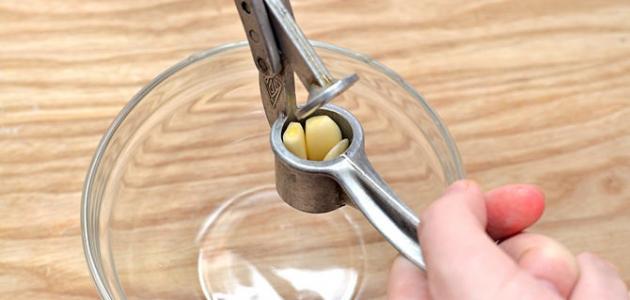 - تؤخذ فصوص من الثوم المقشر ويتم هرسه جيدًا.
