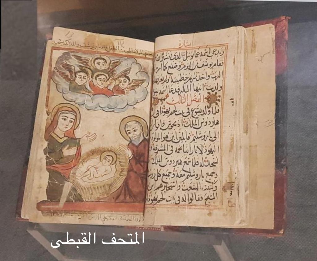 المتحف القبطي: يعرض مخطوط البشائر الـ 4 - القديس متى - القديس مرقس - القديس لوقا - القديس يوحنا، باللغة العربية، ويظهر السيد المسيح بين السيدة مريم العذراء والقديس يوسف النجار وفوقهم الملائكة.