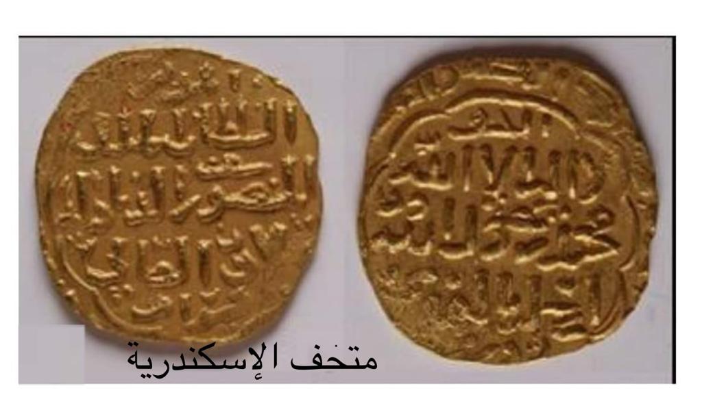 متحف الإسكندرية القومي: يعرض دينار مملوكي عليه نص مكون من 5 سطور يحمل اسم - قلاوون الصالحي - على الوجه، والشهادة - لا إله إلا الله محمد رسول الله - على الظهر.