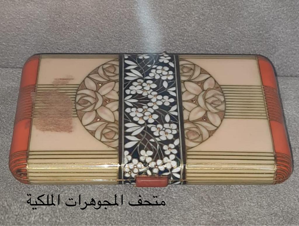متحف المجوهرات الملكية: يعرض علبة سيجار مصنوعة من الذهب ومحلاة بالمينا الملونة، وقفل العلبة من حجر المرجان.