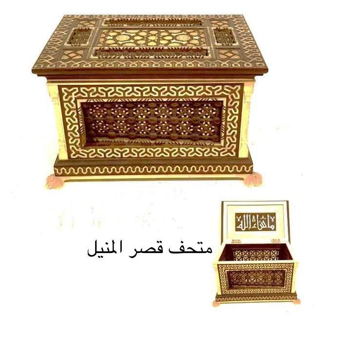 متحف قصر المنيل: يعرض شكمجية مستطيلة الشكل من الخشب المطعم بالعاج، مزينة بأشكال هندسية متداخلة محاطة بإطار من الصدف، وللشكمجية غطاء عليه زخارف الطبق النجمي يتوسطه عبارة - ما شاء الله - داخل إطار من العاج.