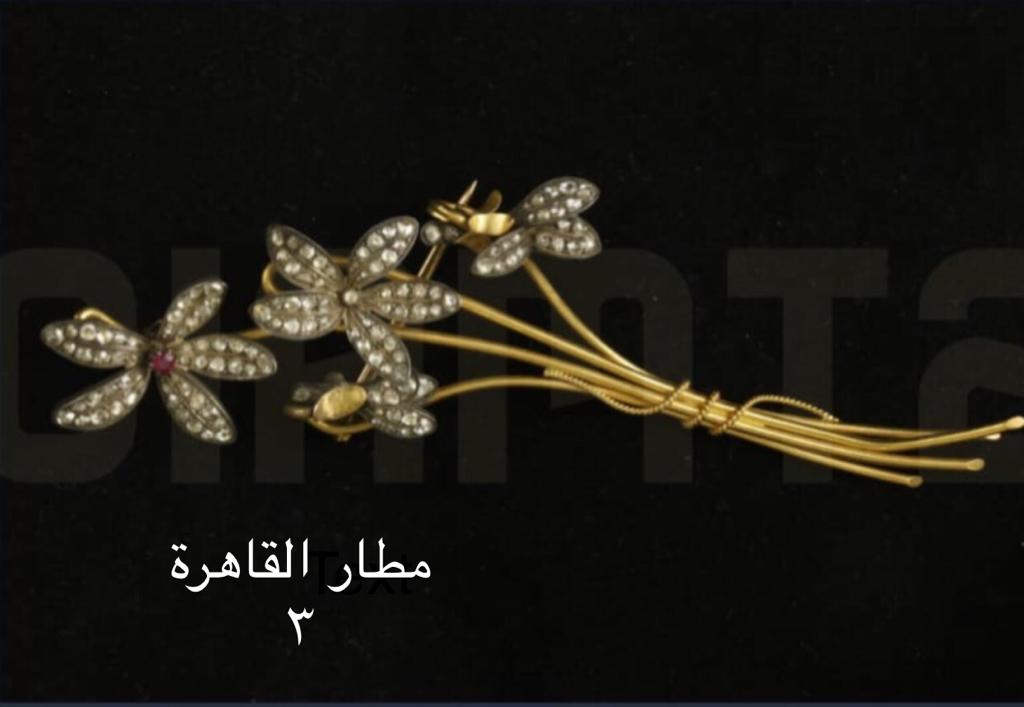 متحف مطار القاهرة الدولي 2: يعرض دبوس صدر مصنوع من الذهب، مطعم بفصوص كريمة، يخص جانانيار هانم، والملكة فريدة.