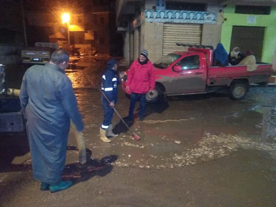 استمرار أعمال رفع مياه الأمطار من الشوارع ببيلا بكفر الشيخ|صور