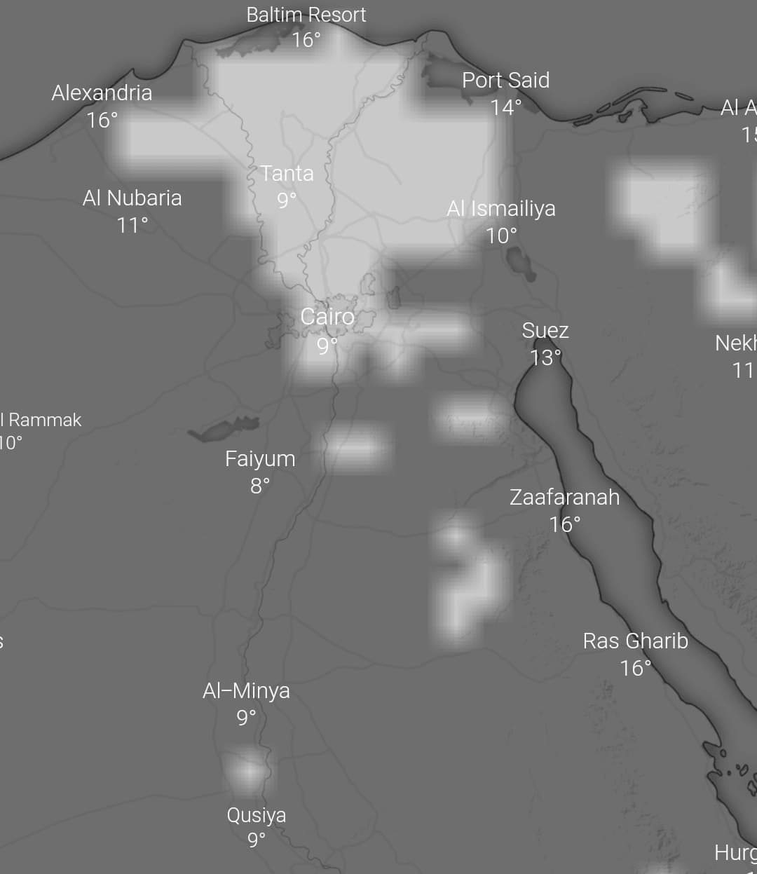 وأشارت هيئة الأرصاد إلى استمرار تكاثر السحب الرعدية الممطرة على مناطق متفرقة من السواحل الغربية ومناطق من شمال الدلتا.