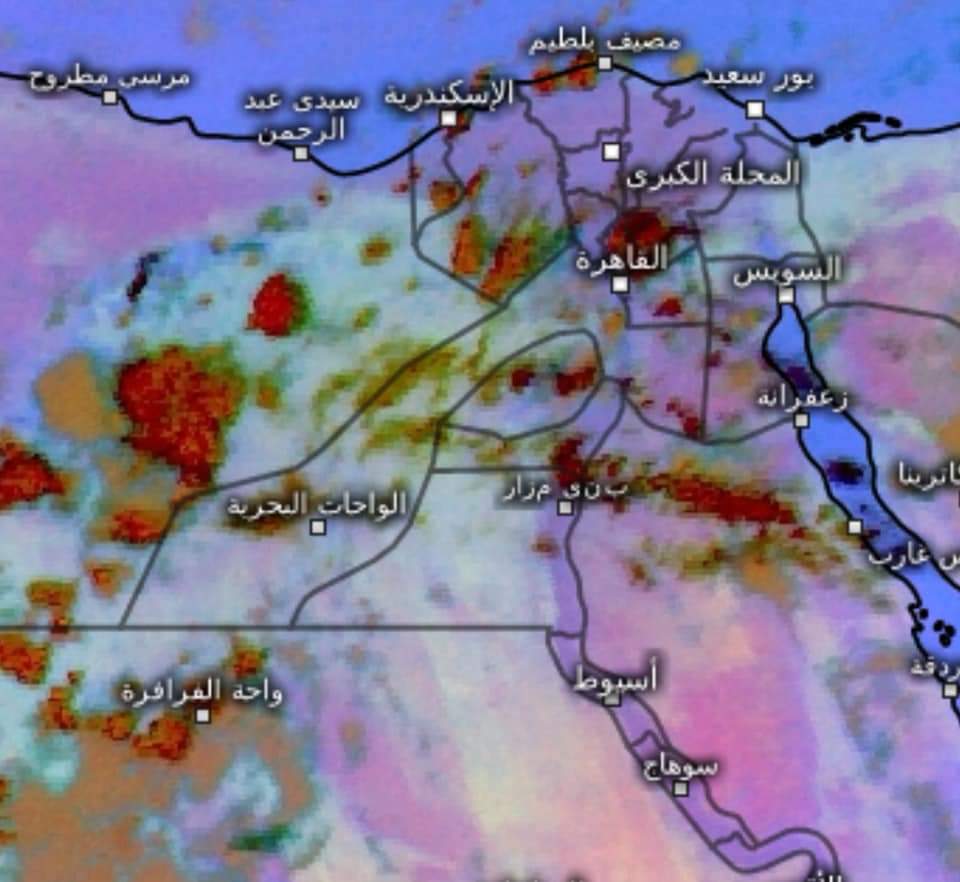 وكانت هيئة الأرصاد الجوية، أعلنت تكاثر السحب المنخفضة والمتوسطة الممطرة على مناطق متفرقة من الدلتا والقاهرة يصاحبها سقوط أمطار، بالإضافة إلى استمرار تكاثر السحب الرعدية الممطرة على مناطق متفرقة من السواحل الغربية ومناطق من شمال الدلتا.