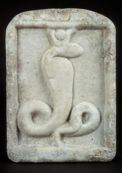 تعد هذه اللوحة الرخامية مثالًا من أمثلة اللوحات الدينية التقليدية التي كانت تكرس لعبادة الإلهة إيزيس. وإيزيس هنا هي إيزيس-ثرموتيس التي تُصوَّر على هيئة الكوبرا. تأخذ اللوحة الشكل المستطيل، أما من أعلى فيلاحظ استدارة طفيفة. ويكاد يشغل تصوير ثعبان الكوبرا جسم اللوحة بالكامل. وقد صوِّرت الرأس من الجانب، ويعلوها تاج مكوَّن من قرص الشمس الذي يكتنفه قرنا البقرة، وهو التاج المألوف لتصوير إيزيس.