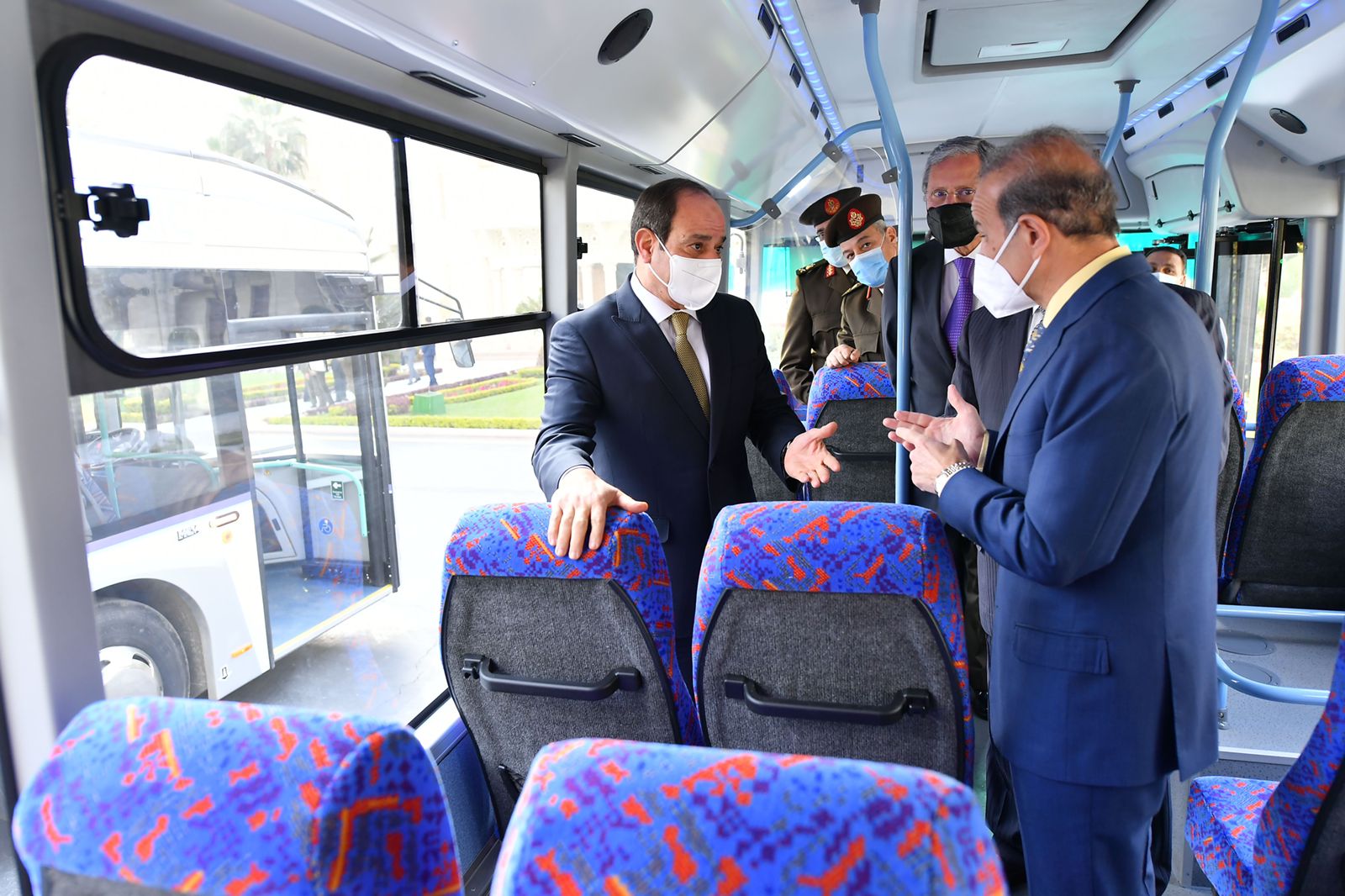 قال السفير بسام راضي، المتحدث باسم رئاسة الجمهورية، إن الرئيس عبد الفتاح السيسي، اليوم، تفقد عددا من المركبات متعددة الاستخدام التي تعمل بالغاز الطبيعي والكهرباء، وذلك في إطار اهتمامه بمنظومة النقل باستخدام الطاقة النظيفة، وبحضور كلٍ من الفريق كامل الوزير، وزير النقل، واللواء كمال وفائي، مدير إدارة المركبات بالقوات المسلحة، واللواء أ.ح محمد عبد الفتاح مساعد مدير إدارة المركبات للتسليح، والمهندس كريم غبور رئيس مجلس إدارة شركة MCV.