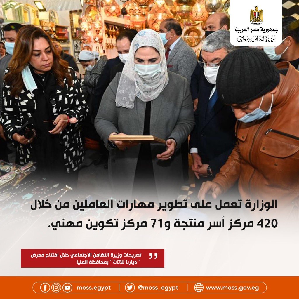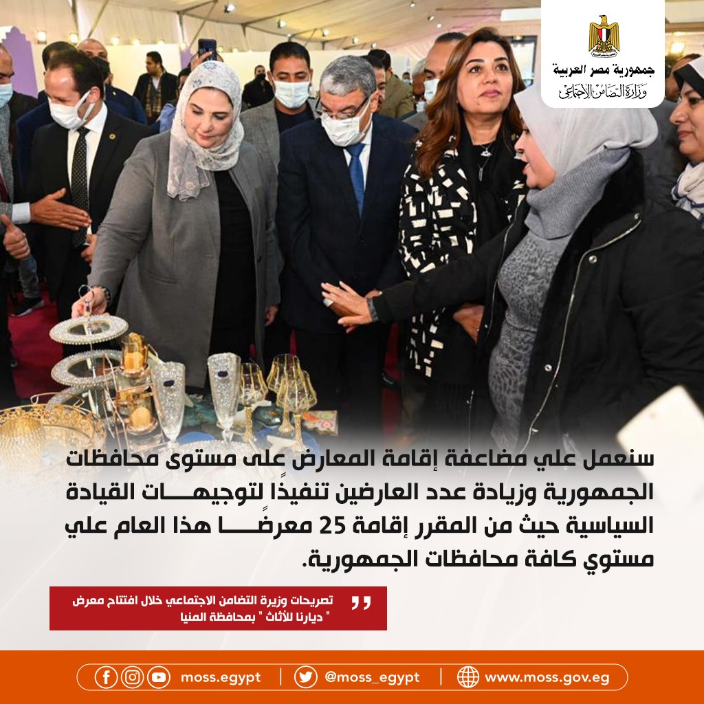 أبرز تصريحات وزيرة التضامن خلال افتتاح معرض ديارنا في المنيا | انفوجراف