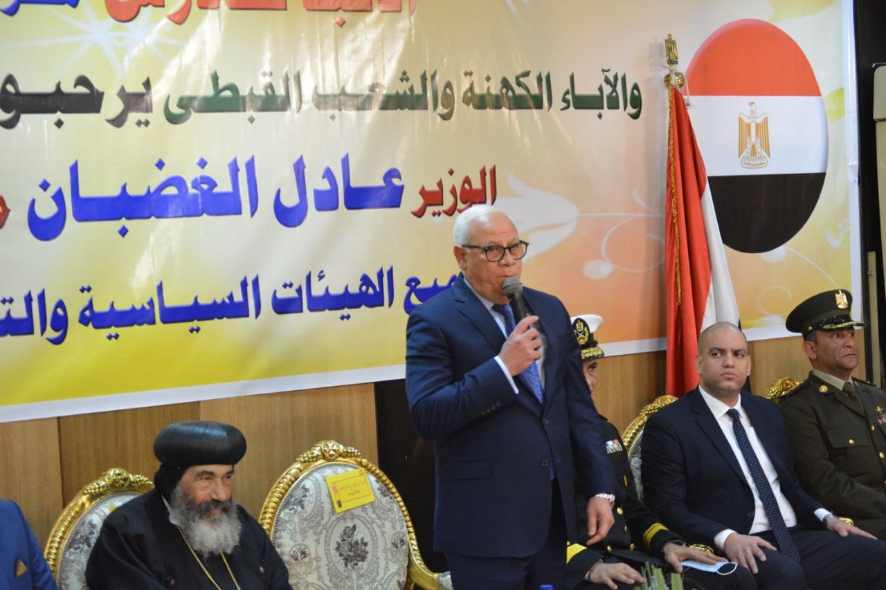 وأكد اللواء عادل الغضبان خلال كلمته، أن الشعب المصري نسيج واحد ولا يستطيع أن يفرقه أحد، قائلًا: نحن جميعا شركاء في الوطن ولا بد ان يتعاون ويتكاتف الجميع للدفاع عن أرض الوطن، وأن يعمل الجميع من اجل استمرار مسيرة البناء والتنمية.