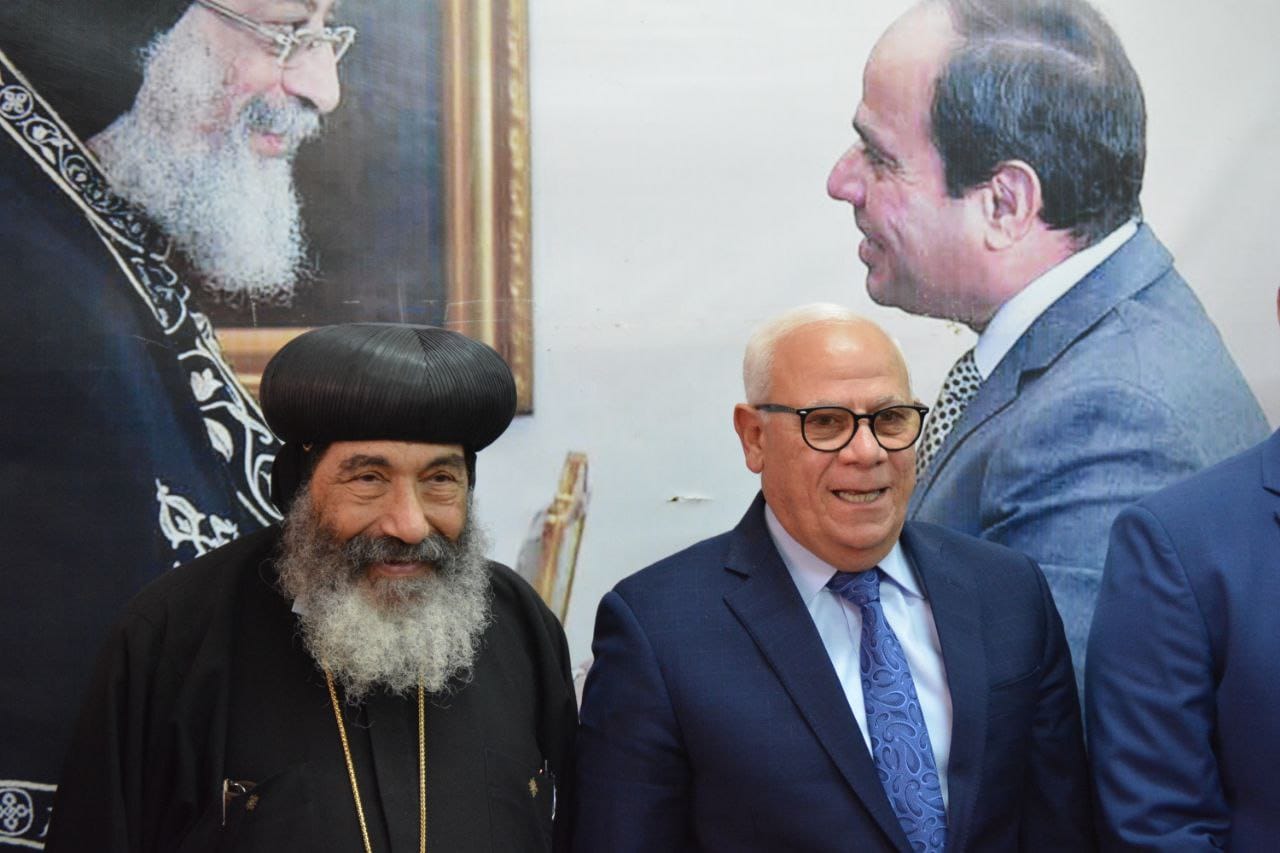 محافظ بورسعيد يقدم التهنئة للأنبا تادروس بالكاتدرائية: رسالة محبة وسلام