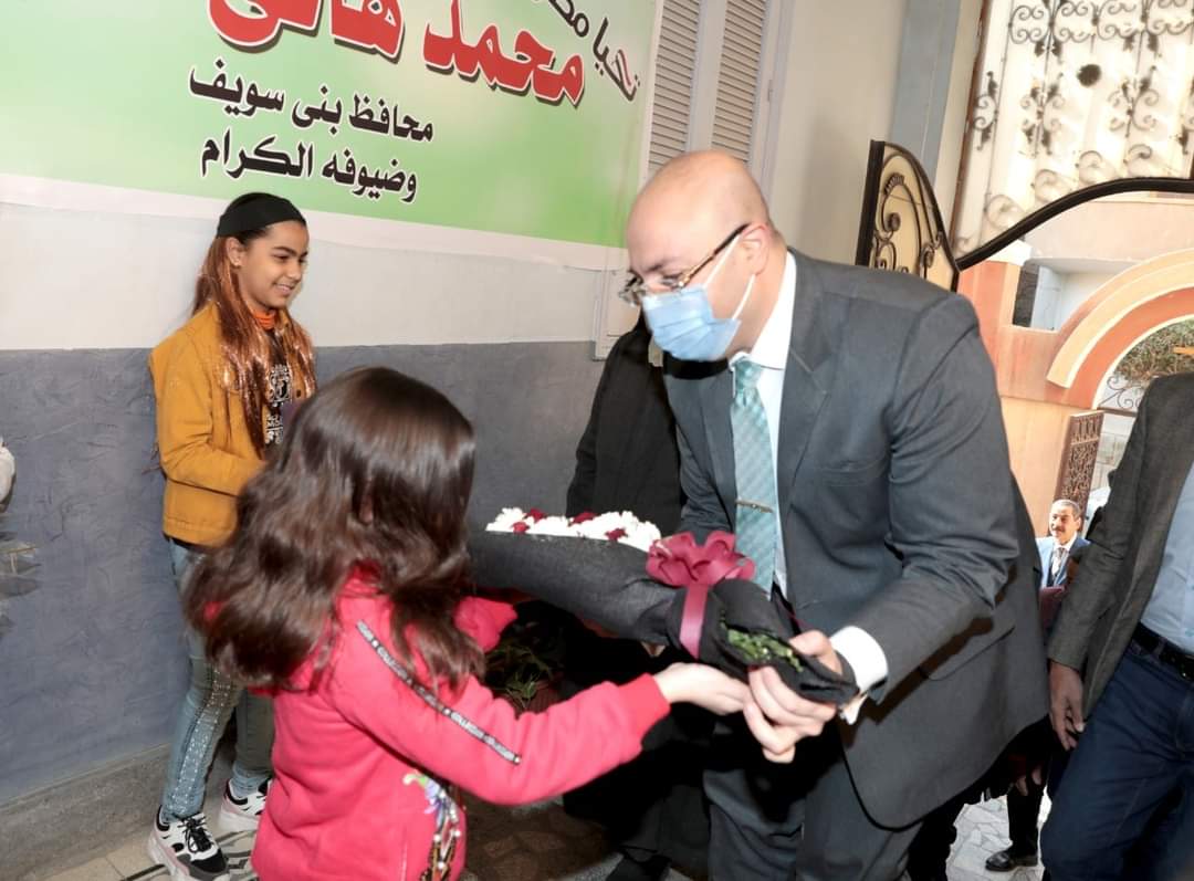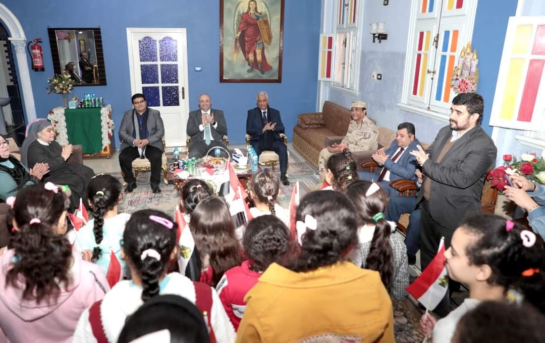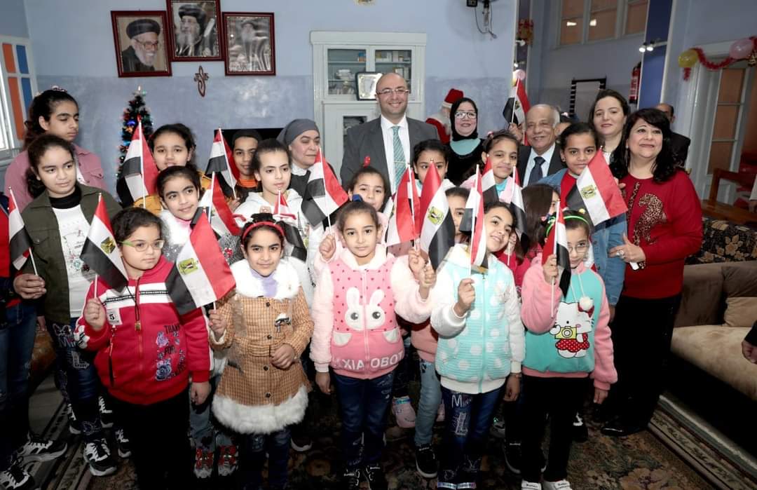 محافظ بني سويف يشارك أطفال مصر من الأيتام فرحتهم بعيد الميلاد المجيد