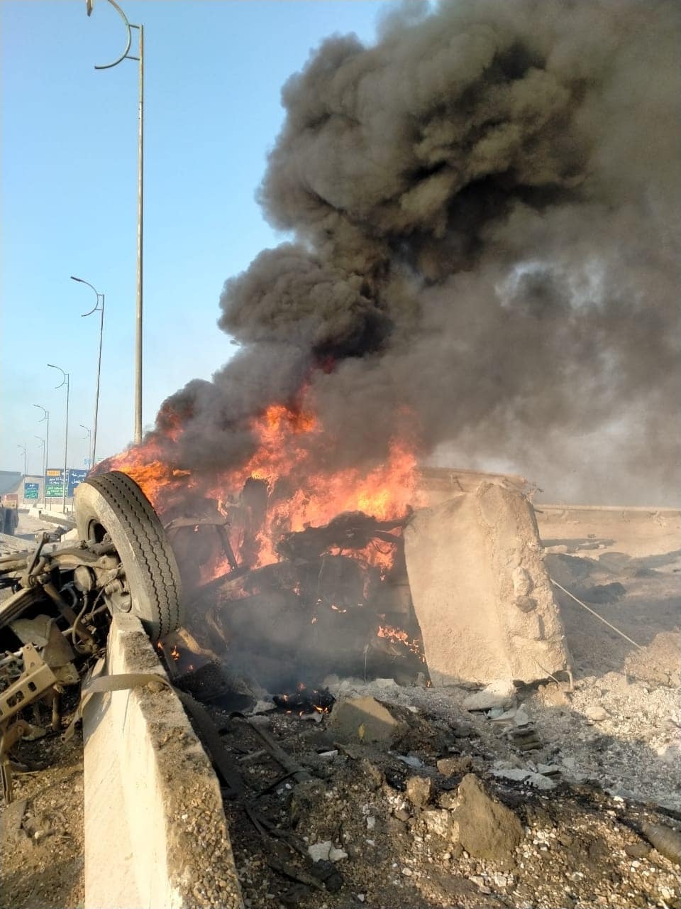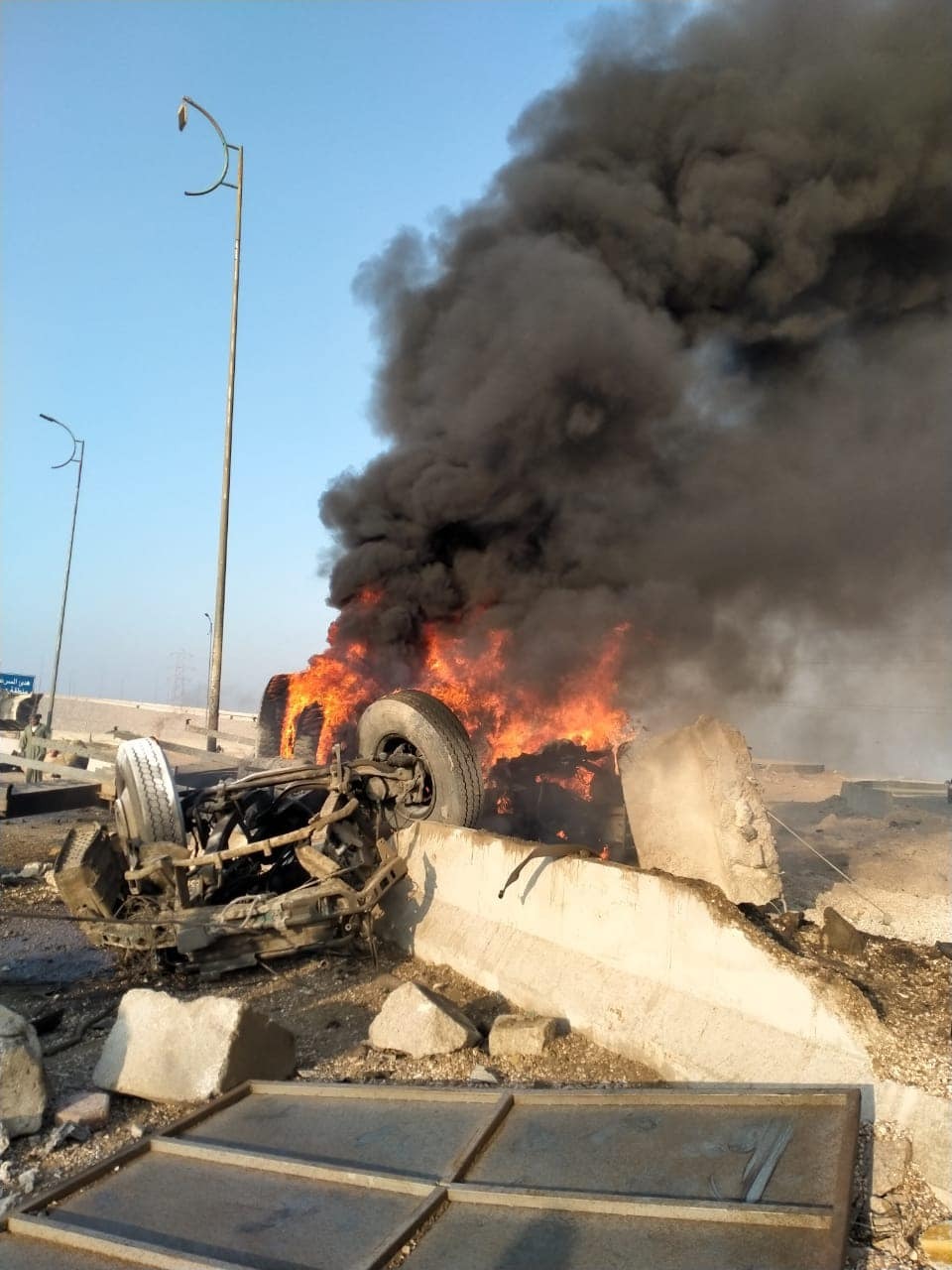 انفجار تانك البنزين.. تفاصيل مصرع شخصين وإصابة آخر في حادث بالطريق الأوسطي |صور