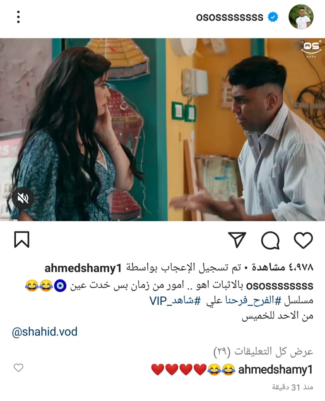 ونشر أوس أوس برومو المسلسل، عبر حسابه الشخصي بموقع تبادل الصور والفيديوهات القصيرة انستجرم، وعلق عليها قائلًا: بالإثبات أهو.. أمور من زمان بس خدت عين.
