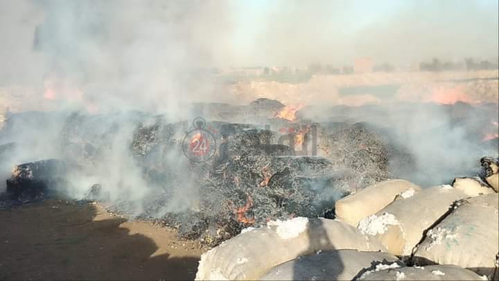 وأوضحت المعاينة، أنّ الحريق نشب في شونة قطن بقطعة أرض فضاء على مساحة 3 قراريط، ملحق بها مصنع لتنظيف الأقطان؛ وأسفر الحريق عن احتراق كميات كبيرة من القطن في الشونة، وبسؤال المالك لم يعلل سبب الحريق، ولم يتهم أحدا، ونفى الشبهة الجنائية، وتحرر المحضر اللازم بالواقعة.