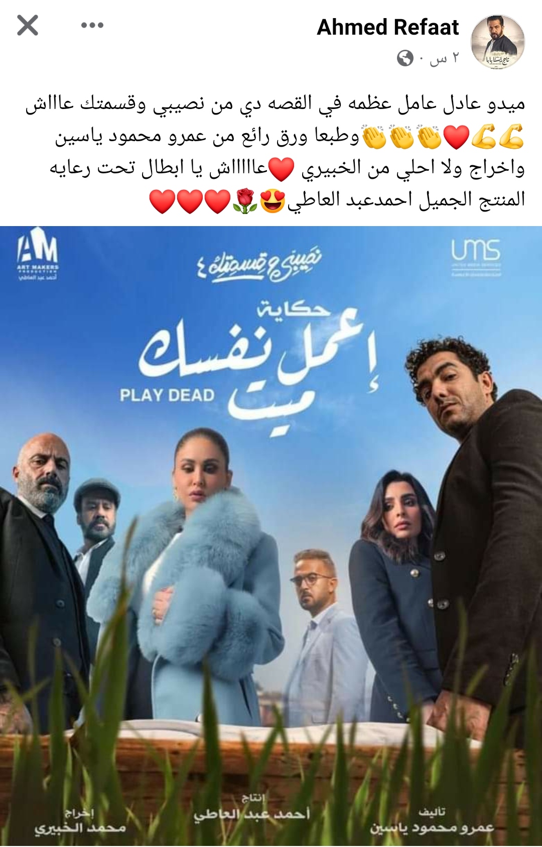 وتابع أحمد رفعت: وطبعًا ورق رائع من عمرو محمود ياسين وإخراج ولا أحلى من الخبيري عاش يا أبطال تحت رعاية المنتج الجميل أحمد عبد العاطي.