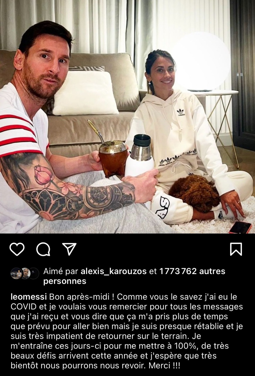 وكتب ميسي عبر حسابه الرسمي على انستجرام: مساء الخير.. كما تعلمون لقد أصبت بفيروس كورونا منذ أيام، وأود أن أشكر جماهيري على جميع الرسائل التي تلقيتها خلال الفترة الماضية، وإصابتي بـ كورونا استغرقت وقتًا أطول مما كنت أعتقد حتى تم الشفاء.